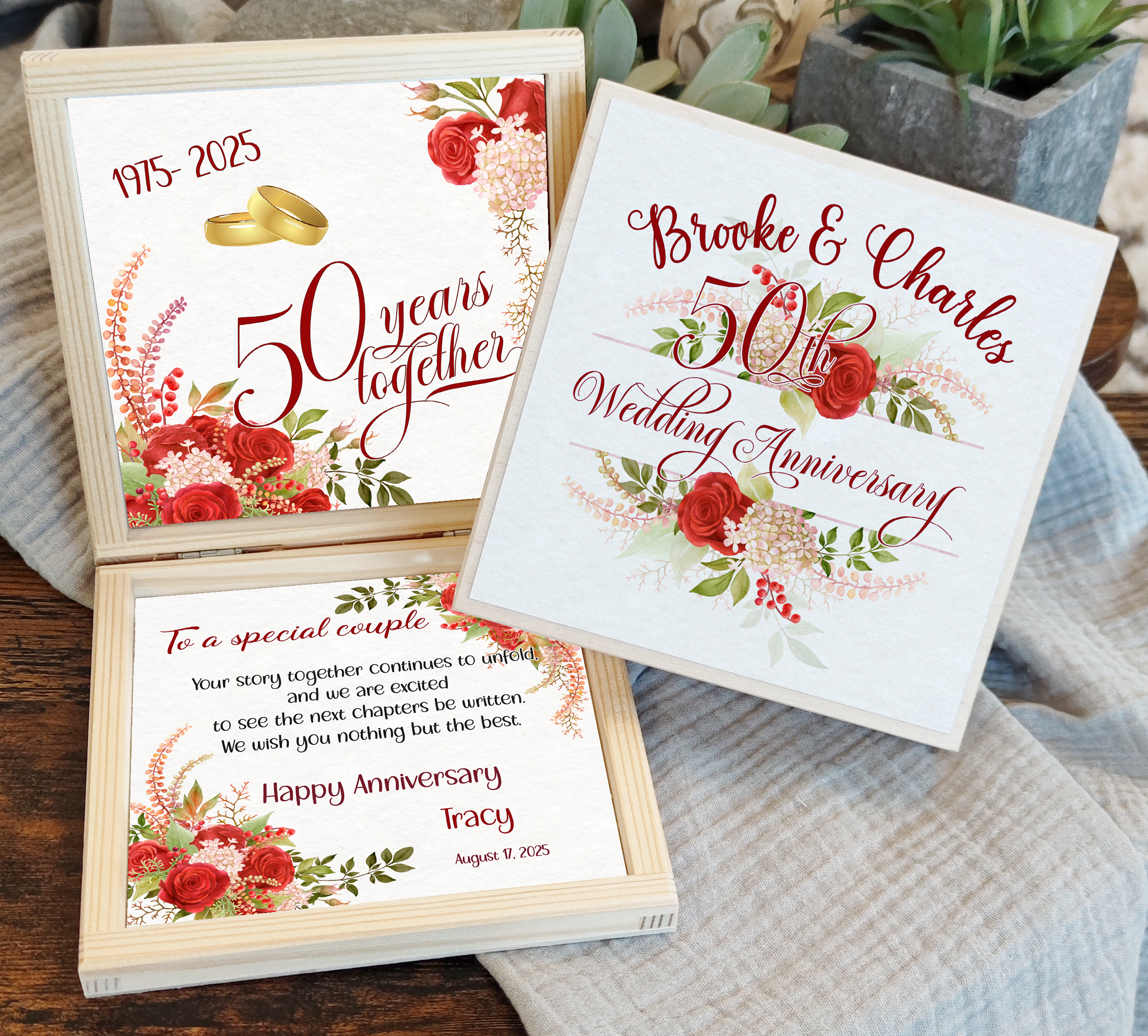• Personalizacja: możliwość dodania imion, daty rocznicy oraz indywidualnych życzeń