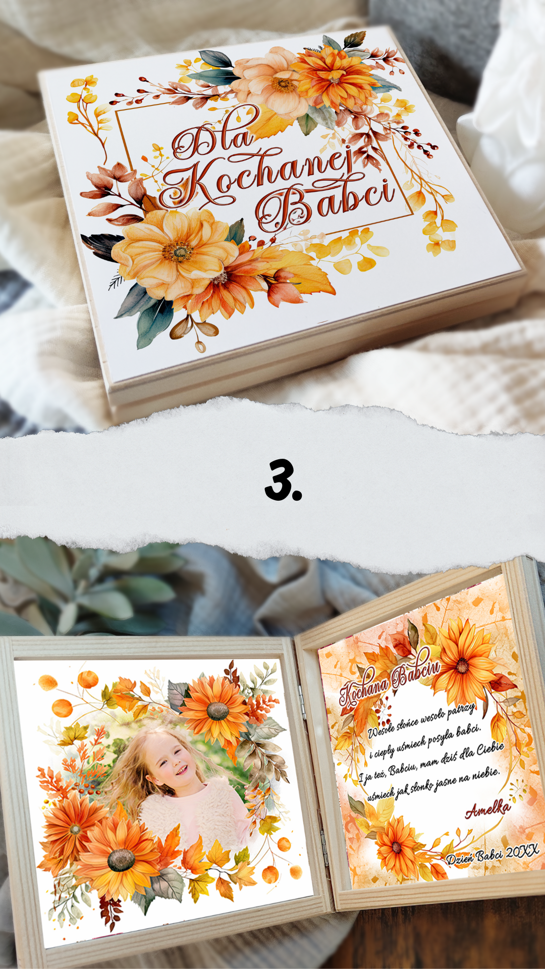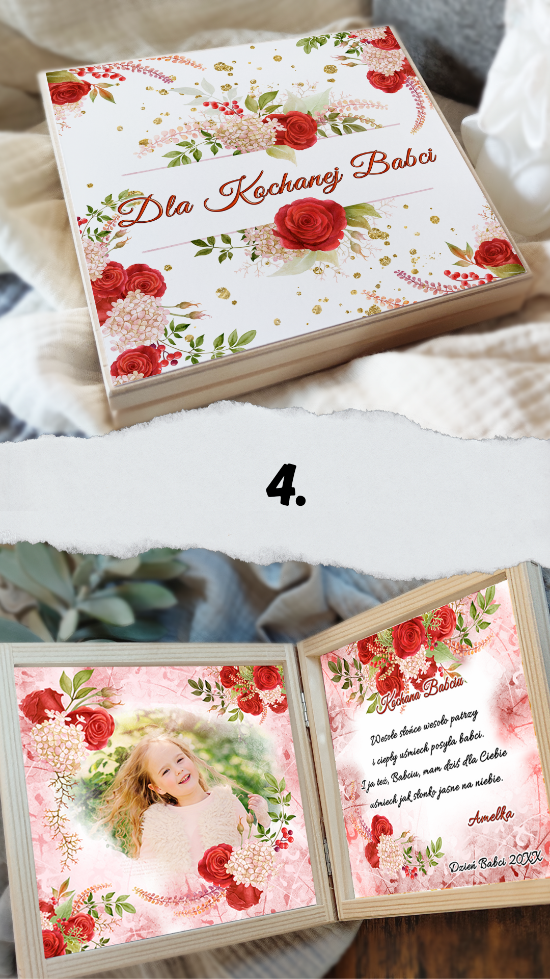 💌 Możliwość dodania własnych życzeń lub zdjęcia.